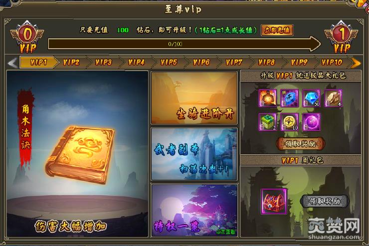 在游戏中,充值一定的元宝就可以成为永久VIP,享受众多福利,赢在起跑线。在游戏左上方角色名字旁,就可以看到您当前的VIP等级,点击即可进入VIP系统。成为VIP可以获得丰厚的道具奖励,更可以获得VIP属性加成奖励、VIP经验加成奖励,额外参与活动的次数,专属幻兽宠物,专属神将,专属时装等一系列的超值特权,打宝升级更容易,VIP等级随着充值元宝的增加而不断提高,VIP等级提升不需要任何消耗,VIP等级越高,可以享受的特权越多。