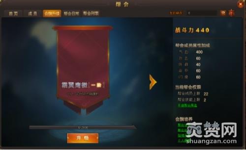 帮旗可以为全体帮会成员增加属性;帮会成员可以通过帮会任务等增加帮旗经验,提升帮旗等级。