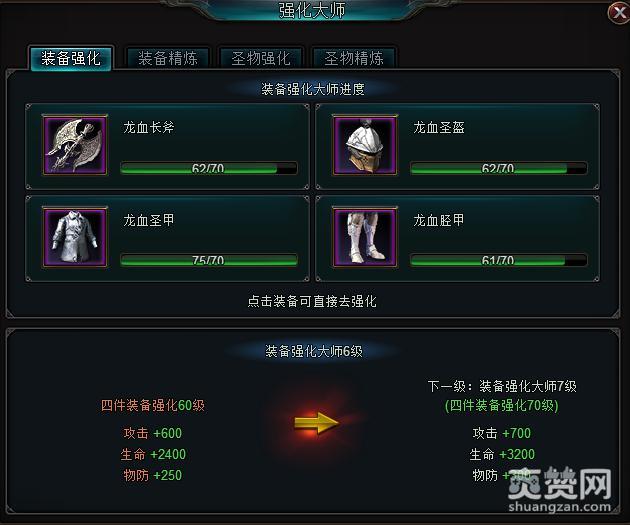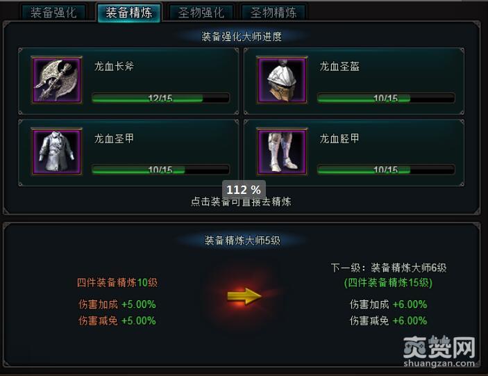 4、必须四件装备最低精炼等级达到要求才会激活更高阶的精炼大师。