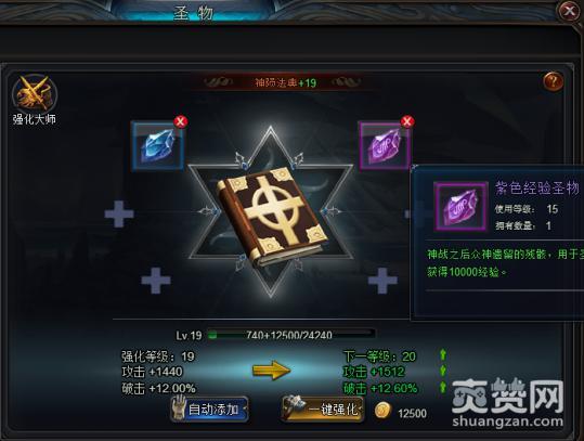 1、圣物强化需要吞噬其他圣物,即“经验圣物”。