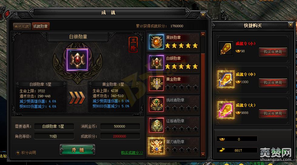 1.商城购买。玩家可花费一定的元宝在商城系统中购买大中小三类成就令;