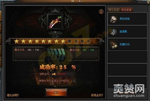 强化+5及以前:这个阶段没有什么技巧可言。对于中小R玩家而言都会多建立1到2个账号,以便获得更多的资源来提升大号,而且这对于装备强化来说也有很大的优势。建议建立起一个道士职业来作为副号,所有消耗金币的任务都可以选择不做。如此一来,你前期的成就奖励外加前期任务获得的金币奖励,3天时间下来基本上600万-800万金币是能有的。