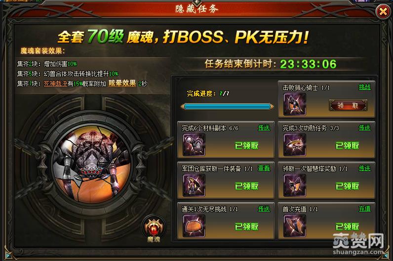 在《魔域永恒》中,玩家们在达到70级后将会开启隐藏任务,玩家们通过这一任务将能够顺利开启魔魂玩法,集齐魔魂套装可以激活非常炫酷的效果。今天小编就将为大家详细介绍一下这一任务的攻略,快来看看吧!