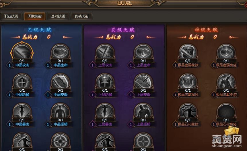 当玩家在完成主线任务的时候,可以陆续的学习职业技能,在人物等级到达一等时,还能通过技能书来对这些技能进行升级,而技能书玩家可以在商店中兑换获得。天赋技能也分为三种,凡级,灵级和神级。这些技能需要玩家在竞技场中获得段位来激活,玩家激活这些技能后,还可以对这些技能进行升级。基础技能是玩家在游戏中随着人物在系统中各个场景的转换来自主学习的技能,这些技能不需要玩家来学习。