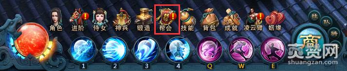 点击戏界面下方中央的“帮会”图标,进入帮会界面,就可以看到思美人帮会Boss的入口。