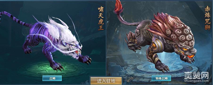 啸天虎王可以在每天19:30至20:00的时候由帮主或副帮主进行普通召唤;而赤炼咒狮则需要进行特殊召唤,所有玩家可以在击杀啸天虎王之后消耗200非绑定元宝进行特殊召唤。