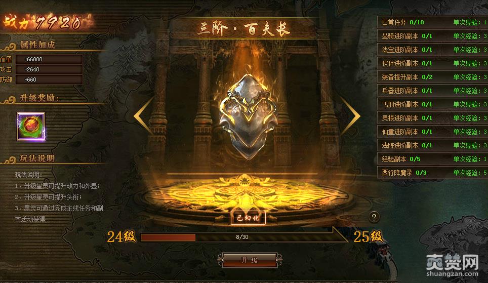说白了,星灵系统其实就是西游之路专属的成就系统与官位系统的结合。星灵系统的每一阶都对应一些需要完成的任务和任务完成后玩家所能获得官位名称,星灵系统等级升的很慢,10级对应一阶的官位。多以如果我们想要星灵系统升的快一些的话就要努力完成星灵系统页面右边所显示的官职对应点所有任务。