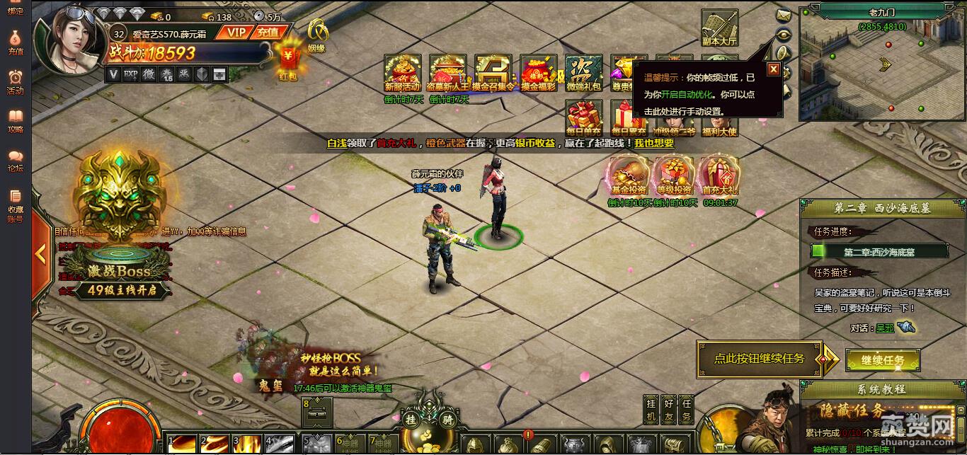 资源:激战boss获得更好装备!参加守护吴邪、阴兵入侵活动,可以获得提升伙伴、装备的好材料!