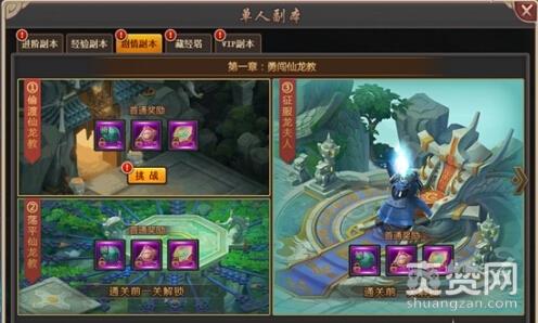 1、玩家达到一定等级的时候则开启经验副本,点击主界面右上角单人副本图标进入单人副本大厅可找到经验副本。