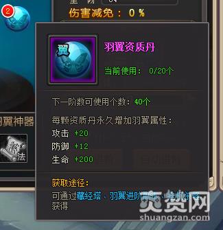 羽翼达到3阶后,将可以喂食资质丹,资质丹可以百分比增加羽翼的进阶属性;