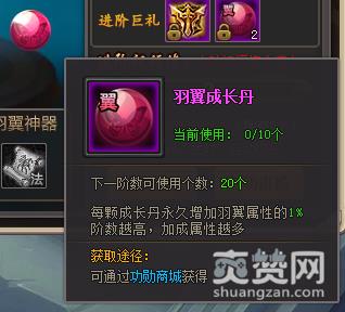 羽翼达到4阶后,将可以喂食成长丹,成长丹可以百分比增加羽翼的进阶属性;