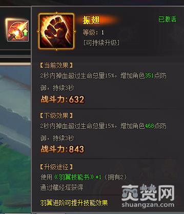 羽翼的技能可以通过使用羽翼技能升级书来进行升级,升级过后的技能增加更高的人物角色属性;