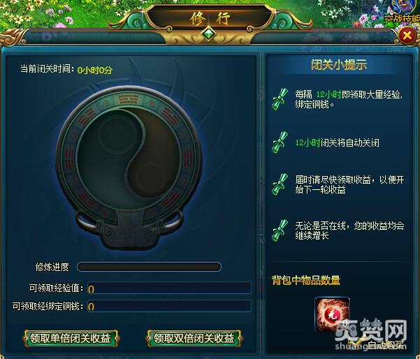 游戏中的修行系统是一种无需挂机的经验积累系统。也就是说无论玩家是否在线,即使你不去打怪完成任务也可以积攒经验。玩家可以随时领取闭关修炼时的经验,但是想要收益最大化最好每隔12个小时领取一次经验,因为这个系统每次最多12小时,超过12小时不再积累经验。所以玩家应该每12个小时收取一次经验,好让系统急需下一轮收益。除了定时收取,玩家也可以使用修炼丹,那样可以领取双倍的收益。