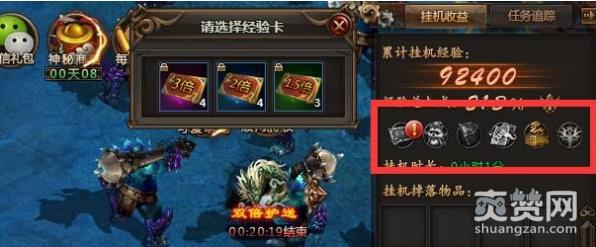1、经验卡:经验卡类型有三种,分别是3倍经验卡、2倍经验卡和1.5倍经验卡,都可以从日常奖励中产出,且持续时间每次使用都是1小时,经验卡有一个好处就是三种类型的经验卡可以一起用,经验加成完美叠加,我们挂机的时候可以在右边看到挂机收益一览,在经验总加成下面最左边的小图标就可以点开使用经验卡。