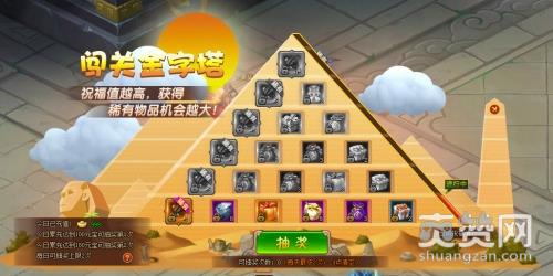 玩家们想要获取金字塔中的抽奖机会需要充值,每天累充100元宝可抽奖一次,累充达到180元宝可再抽一次,但要注意的一点是每天24点重置抽奖次数,小伙伴可别把次数浪费了哦。抽奖有几率获得稀有道具,一旦抽中稀有道具即可升至下一层,每次抽奖将累积1点祝福值,祝福值越高,抽中稀有道具的概率越高,当玩家们达到金字塔顶层后,将会重置金字塔层数和奖励。
