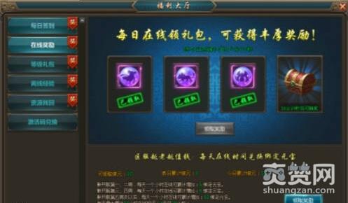 玩家每天在线达到一定的时间后可获得一次抽奖的机会,累计在线时间越长,可获得的奖励越丰厚。。