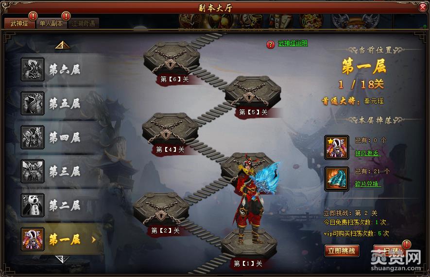 但小编要提醒一句,挑战成功后次日选择“扫荡”按钮即可一键通关至先前挑战到的最高层次,轻松获取奖励,成为VIP更可每日扫荡5次,不要太给力呦~