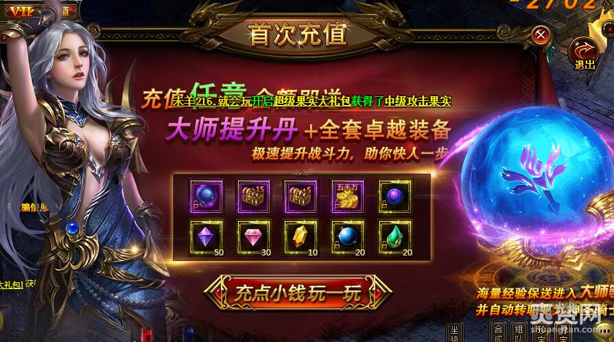 可以看到,首充不需要充很多钱就可以获得大量的稀有道具奖励,相比较一点点的打怪完任务获得,首充得装备的速度和效率都要高得多。所以如果你正在犹豫是否要首充,那小编就告诉你,不要犹豫!