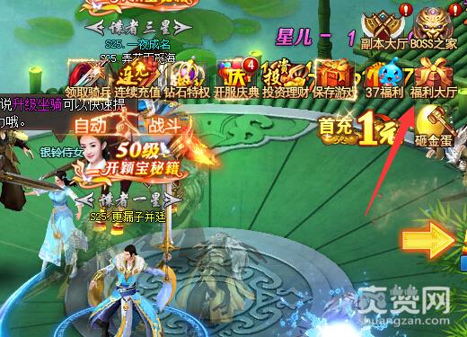 首先,我们进入游戏之后要点击游戏右上角的“福利大厅”进入7日登陆奖励界面