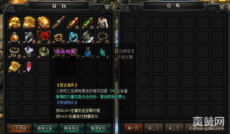 大家可以将不用以及贵重的物品存放在网页游戏仓库里,不仅仅可以腾出更多空间,能够去捡取副本、boss的掉落物品,还能有效的避免PK时会掉落贵重物品。