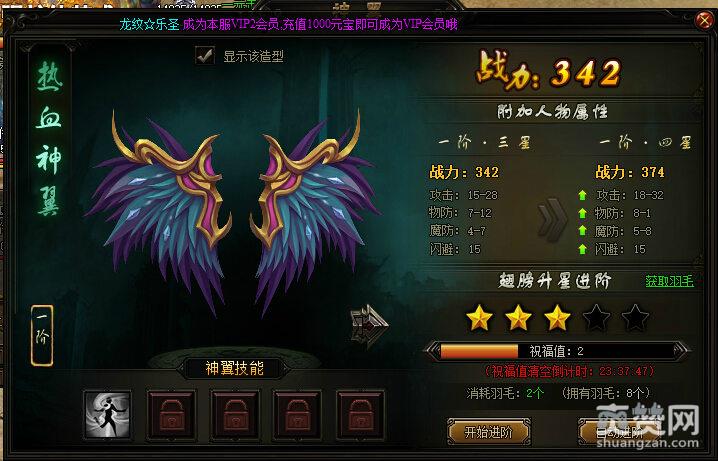 羽毛获得很难,在使用羽毛祝福翅膀的时候更加要小心。因为赤月传说2翅膀的升级机制是祝福型的,祝福值越高那么成功就越容易,所以小编在这里提醒各位大大,一定要准备好足够多的羽毛,不然等到24小时之后祝福值被清零了,那可是肠子都要悔青咯。