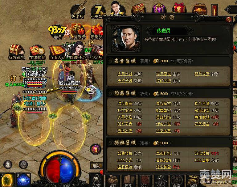 2、会员挂机地图。除了普通的挂机地图之外,在同样的地方可以传送到特殊的五倍经验挂机区。只有vip玩家才可以进入,每一次进入都需要收5000金币的手续费用,每一天进入这个挂机地图都是没有时间和次数限制的。