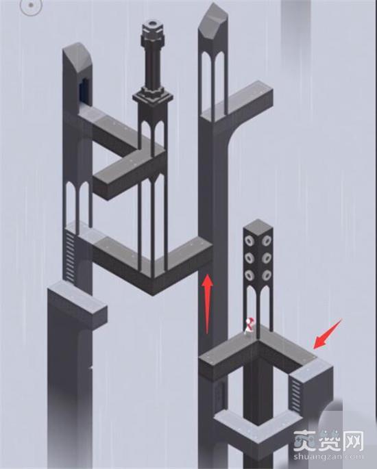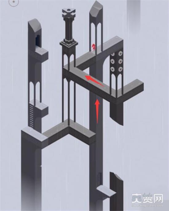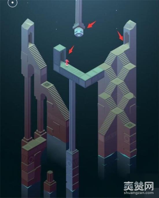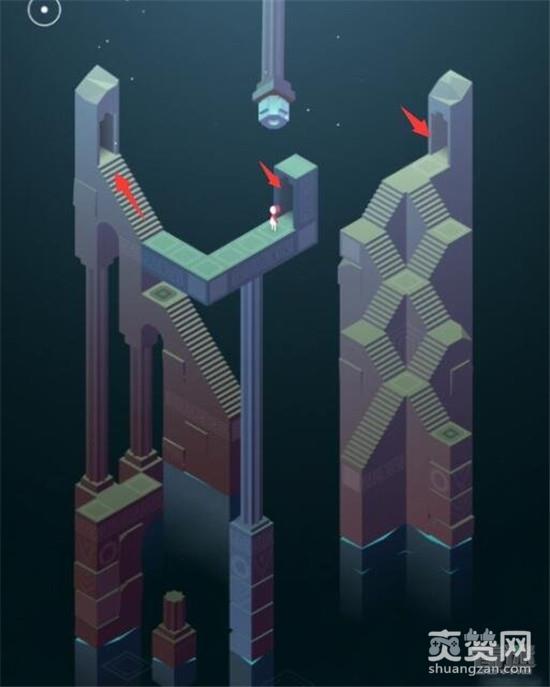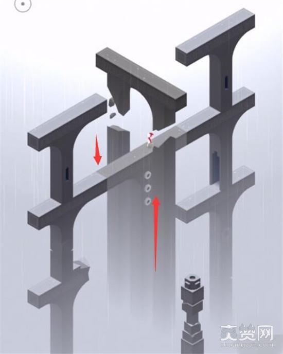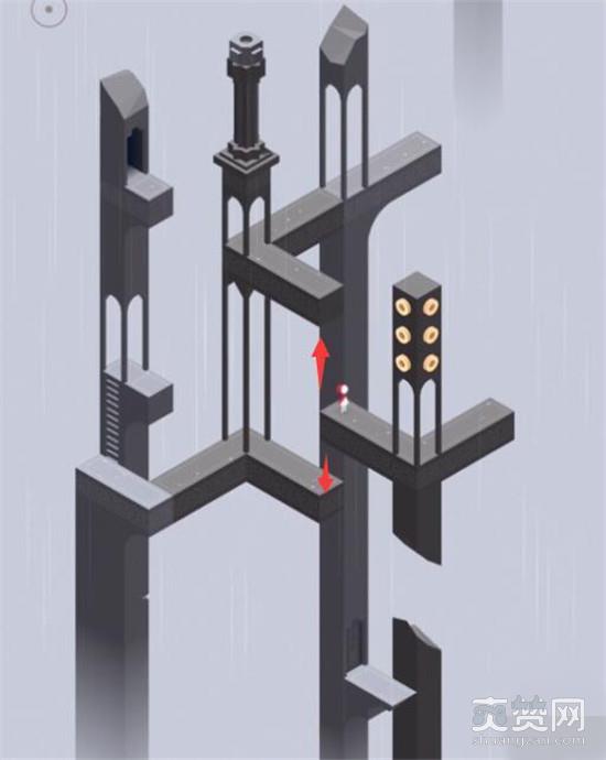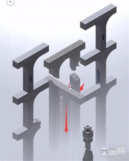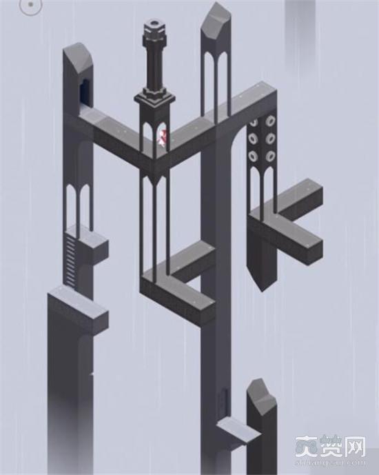 第十四步:萝尔到达最上方右边后,再次转动转轴,使得萝尔站立处与入口相连即可。第十七步:这关比较简单,只要无视重力原理,顺着边缘的道路一直走就能到达蓝色小人儿处,听它说一段逼格很高的话就能过去了。