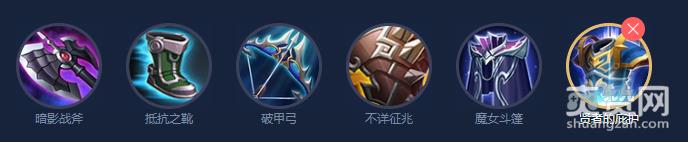 王者荣耀花木兰出装推荐:暗影战斧+抵抗之靴+破甲弓+不详征兆+魔女斗篷+贤者的庇护