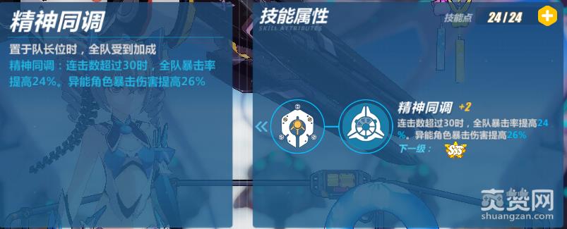 1、队长技:精神同调,连击数超过30,全队暴击率提高,异能角色暴击伤害提高,这在以前流行强袭的时候山吹是必定作为队长的,能极大的增加队伍的伤害,不过现在由于强袭退出了T1队伍后,渐渐的山吹也不作为队长了。