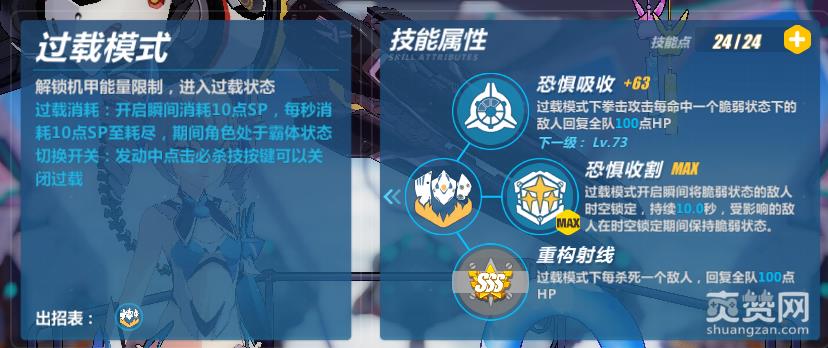 2、过载模式,作为山吹的大招,也是山吹奶量所在的技能,在普攻给怪物加了低BUFF后开启大招,每攻击一次怪物可回复一定血量,这里还有一个小技巧,当山吹装备激光类武器时,当武器快要过热时,开启大招,A两下再关掉,可以刷新激光的热度,这样山吹就可以持续输出了。