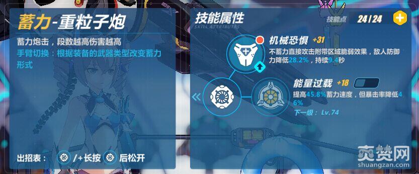 3、蓄力—重离子炮:当不蓄力的时候打一下怪物,就可以给怪物上一个脆弱效果的低BUFF,这时你开启大招,怪物不但会被控制,打他还能回血,能量过载这个技能手动开启的时候可以增加火炮类武器的射速,但是会降低暴击率,具体的选择就看舰长喜欢带哪种武器啦。