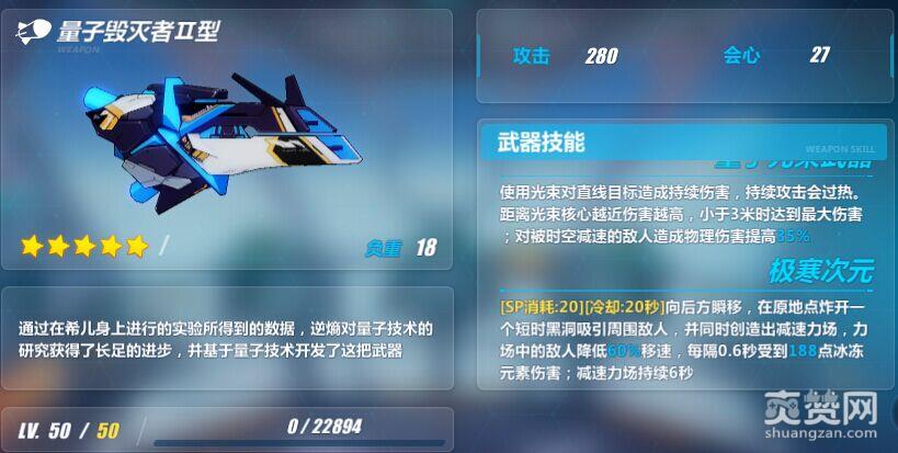 在武器选择上山吹比较适合带量子毁灭Ⅱ型,不错的攻击面板以及27的会心,能使山吹打出更高的伤害,武器被动技能对时空减速的敌人造成的伤害增加35%也能极大的增加山吹的伤害,主动技能制造黑洞更是能把敌人集中在一起,方便山吹输出。