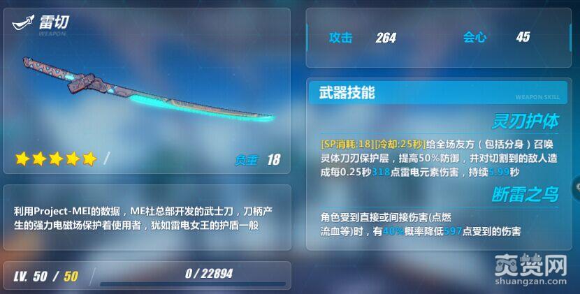 雷切的攻击面板在五星武器中偏低,但是其会心面板极高,配合圣痕及队长技能,可以打出很高的伤害。