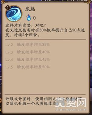 二技能是被动技能,夜叉打掉对方血的时候有30%概率提升20点的速度,这20点速度在斗技时有非常大的作用。