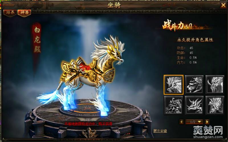 1、 白龙殿。这是以西游记当中的白龙马作为原型的坐骑。能够永久提升角色45的攻击和防御,以及0.5%的生命和内力。
