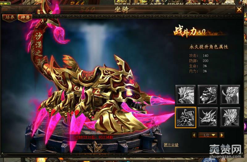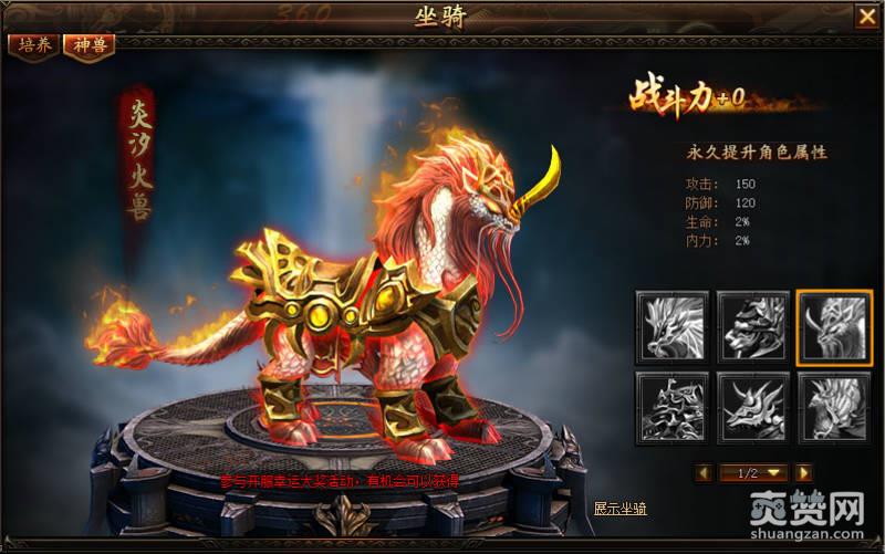 3、 炎汐火兽。参与开服幸运大奖活动,就能够获得了。永久增加150的攻击力和120的防御。提高2%的生命和内力。