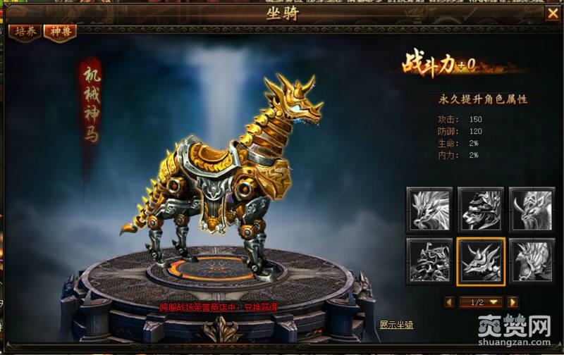 5、 机械神马。跨服战场的荣誉商店中,可以兑换得到。增加150的攻击力和120的防御。增加2%的生命和内力。