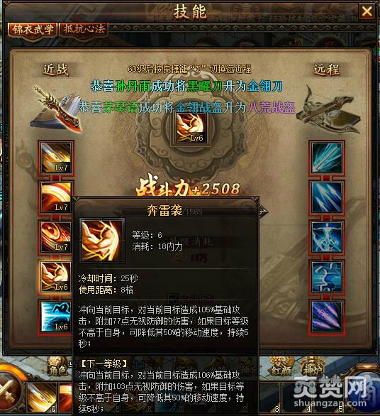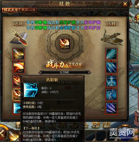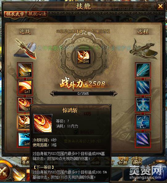 3、 惊鸿斩。范围伤害并且忽视防御,虽然技能伤害不错,但是由于技能的cd比较的长,所以小编建议主要千军斩的升级比较重要。