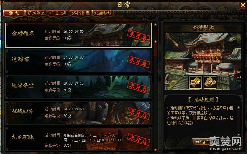 4、 金榜题名。听名字就知道一个科举性质的活动。只要在活动的时间内参加殿试,回答正确之后,就可以获得相应的积分啦。当然小编建议,在这里可以使用答题器,提高自己答题的正确率。在活动结束之后,根据各自的积分排名,奖励也是不同的。