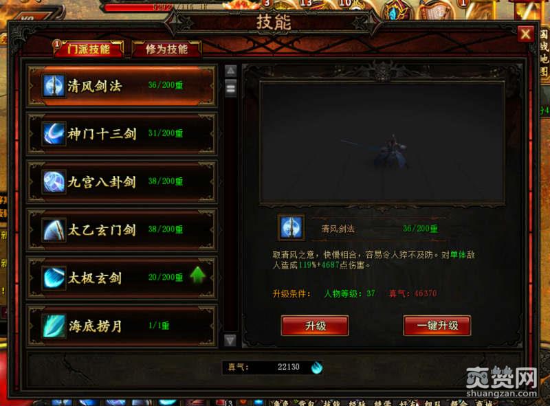 1、 清风剑法。单体攻击技能,作为最基础的技能,清风剑法的重要性不言而喻,很多人会比较喜欢倒数第三个技能的单体,但是小编研究了一下,清风剑法的公共cd只有0.8s,而太乙玄门剑的cd有1.3s,在同样的时间下,清风剑法可以多打出30%的伤害。
