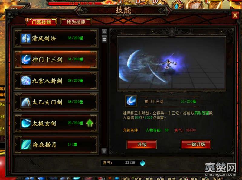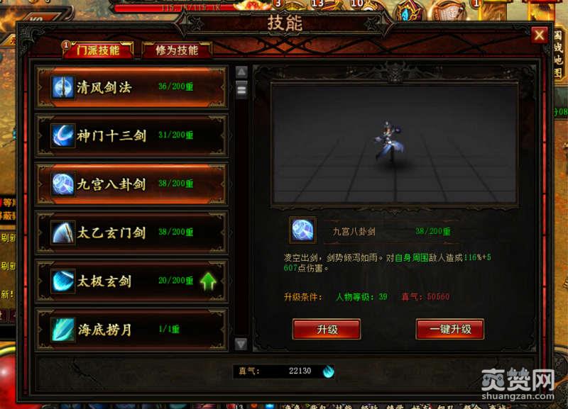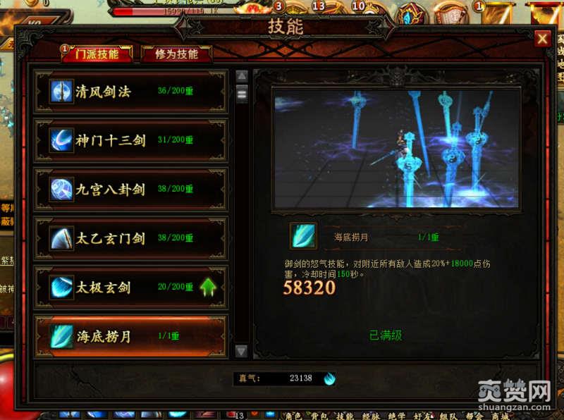 3、九宫八卦剑。对自身周围造成圆形的aoe伤害。这个算是御剑除了怒气之外最强的aoe技能了,攻击加成高达116%。在群怪的时候非常的有效,但是pvp的时候因为前摇很长,建议不要使用。