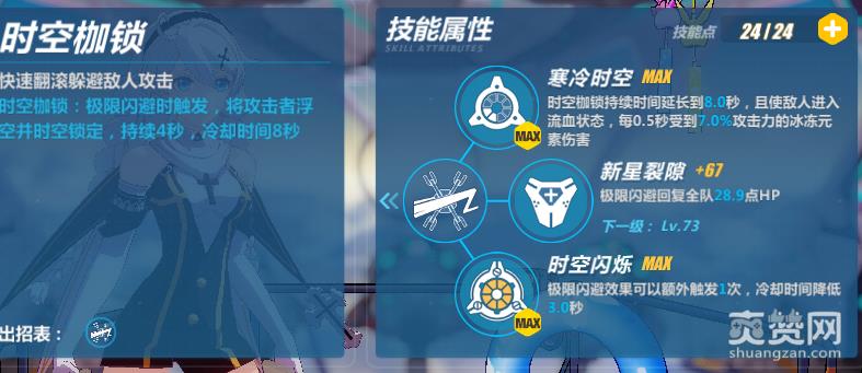 闪避技能时空枷锁:圣女的闪避真的强,不仅能额外触发一次,点满后CD更是短的不行,用得好不仅能给全队回血,还能让怪物从天上下不来。