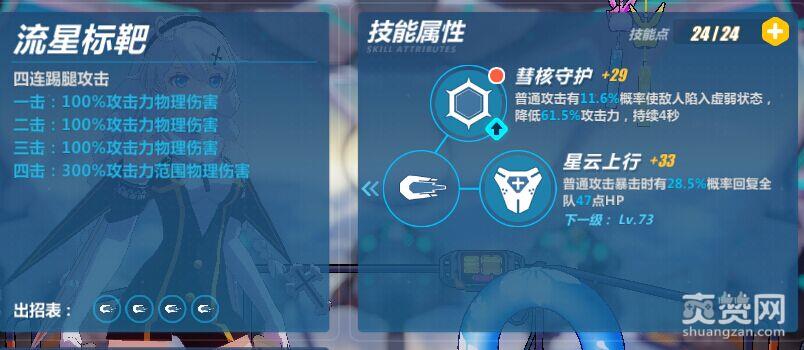 流星标靶:圣女的普攻,很容易让怪浮空,可以接队友的QTE,并且暴击是很容易触发回血,还有概率让怪物虚荣,也是居家旅行必备之技能。