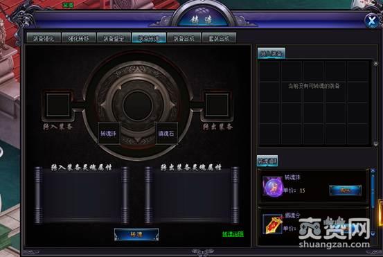 只有部位相同的装备可进行装备转魂,转魂可将其他装备的灵魂属性转到所需装备。但是转魂有成功率,转魂失败则被转魂的灵魂属性将消失,并且每次转魂只能转一条灵魂属性,另外转相同灵魂属性的几率极低,请谨慎操作。