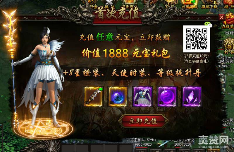 首先进入到游戏就开始做主线的任务了,首冲是一定要的,把橙武拿到手再说。这个时候花费88元宝把奖励的60级装备领到手,这个时候你的装备就很好了。因为游戏送的武器都是加攻击的,所以不用担心以后升级武器的时候发现装备的属性不对。
