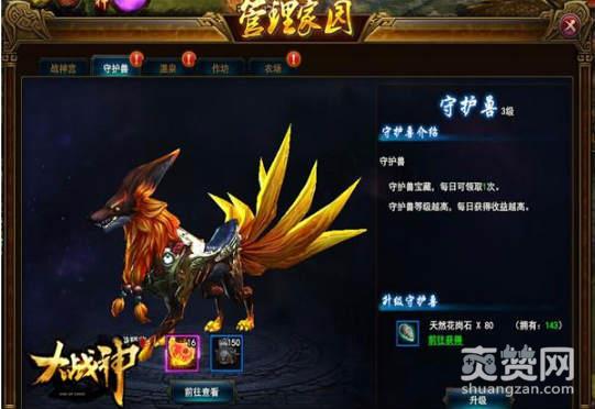 守护兽,守护兽每天都会为玩家勤勤恳恳提供将魂碎片和威望值,并且如果守护兽等级越高,那么获取的收益就越高。但是小编在这里要提醒的是,守护兽是需要去升级的,但是升级可以不用太高,因为在升级的过程当中,温泉更加的重要。而且每天只能够收获一次,投资太多有点得不偿失。