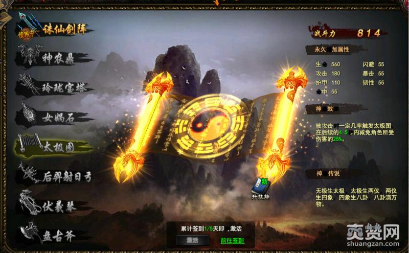 5、太极图。签到5天可以获得。被攻击的时候减免伤害。相当鸡肋,小编建议不要用。