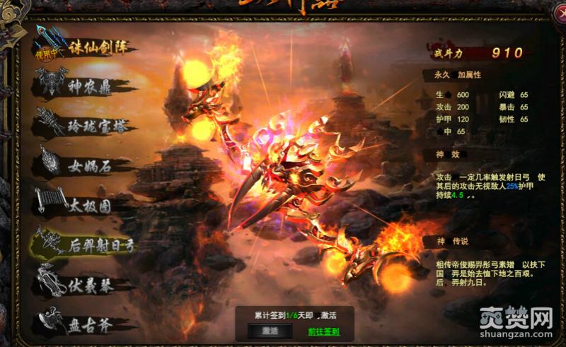 6、后羿射日弓。练级签到6天可以获得。破甲伤害,无论是pvp还是pve都可以上场并且非常强力的存在。建议主要升级。
