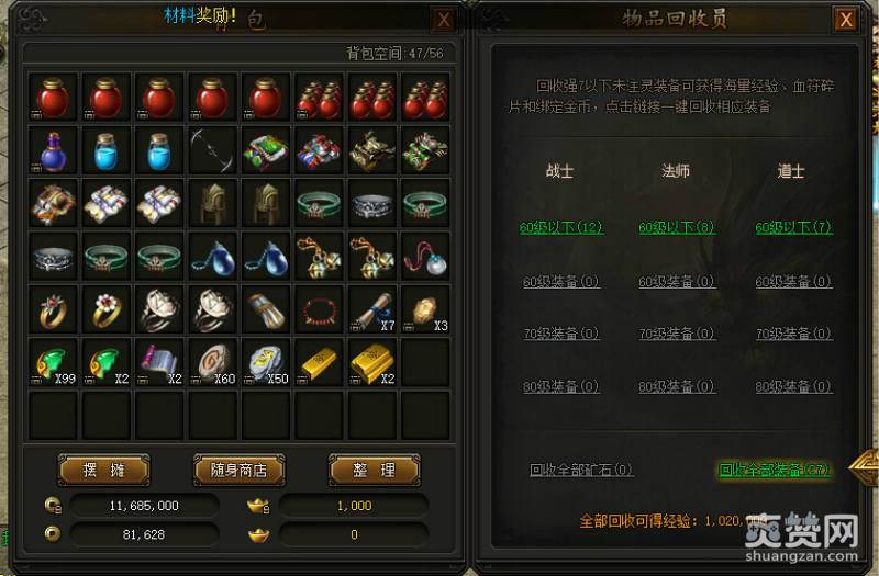 做完了主线我们就到了67级左右,就要开始每天的做日常和混副本了。在我们做这些副本的过程当中,会有非常多的装备,很多玩家都让那些装备烂在仓库里面了,但是实际上有装备回收的功能。在这个游戏当中,装备回收的经验是非常多的。所以想要快速的升级,那么装备的回收是一定要的。