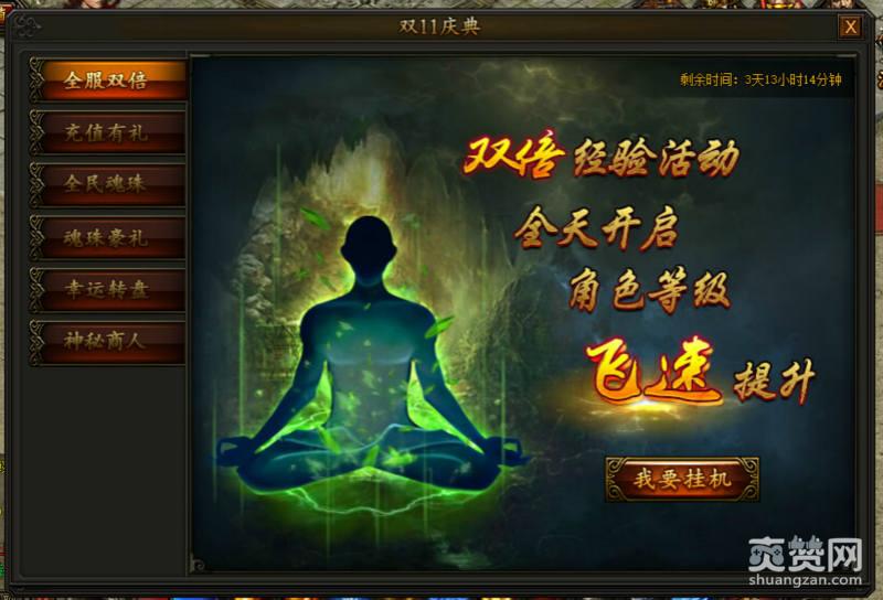 1、全服双倍。双11,传奇霸业也退出了双倍经验的活动。很多玩家朋友都是因为自身的等级限制参加不了很多的活动,那么现在开启了双倍经验的活动,并且持续几天,经过这几天的洗礼,玩家的等级就能够有质一般的突破。
